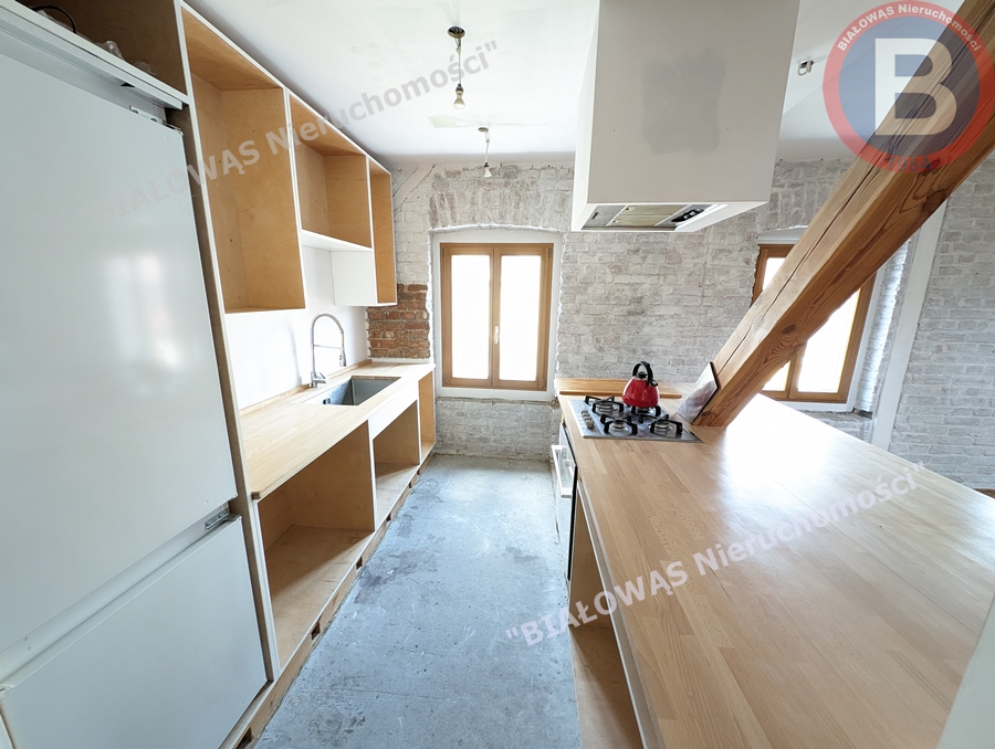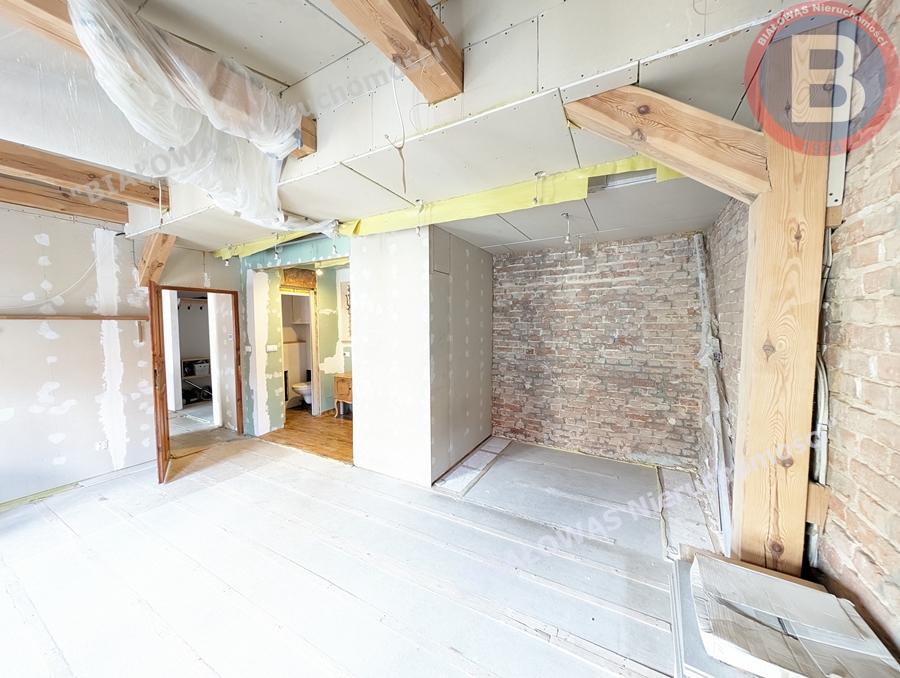 Nowe Okna drewniane 3 szybowe, izolowany i docieplony strop, zachowana i odrestaurowana cegła na ścianach aby zachować charakter przedwojennej kamienicy. zabudowa kuchni wraz z wyspą pod wymiar,